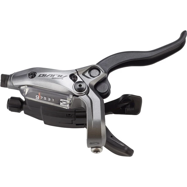 Le levier de vitesses et de frein intégré du groupe Shimano Alivio ST-M4050 garantit une utilisation simple et intuitive. La conduite du frein et le câble de changement de vitesses sont placés près l’un de l’autre et rendent le poste de pilotage épuré et rangé. L’affichage des vitesses indique toujours sur quelle vitesse vous roulez.