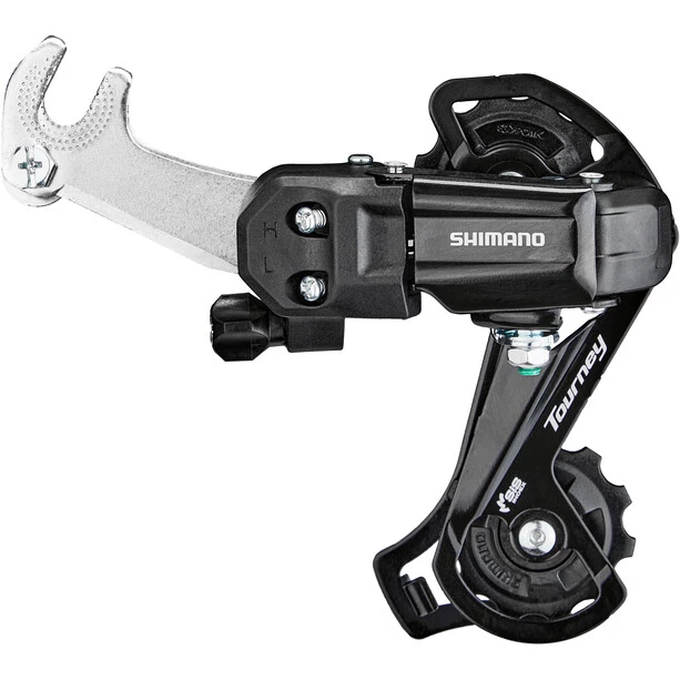 Le dérailleur arrière SHIMANO TOURNEY TY200, qui est compatible avec les circuits SIS indexés à 6 et 7 vitesses, offre des performances de déraillage fiables et un design sportif.
