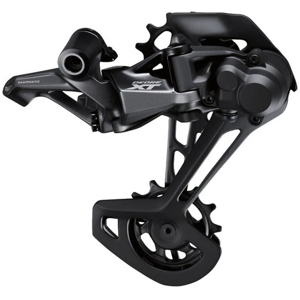 La toute nouvelle série de dérailleurs arrière Shimano Deore XT M8100 offre un nouveau niveau de réduction du bruit avec moins de tension dans les rapports inférieurs et une butée supplémentaire sur la cage. Les galets inférieurs 13Z, plus grands, offrent une plus grande efficacité et une meilleure gestion de la chaîne, tandis que la compatibilité avec la nouvelle cassette 12 vitesses de Shimano augmente considérablement la bande passante.